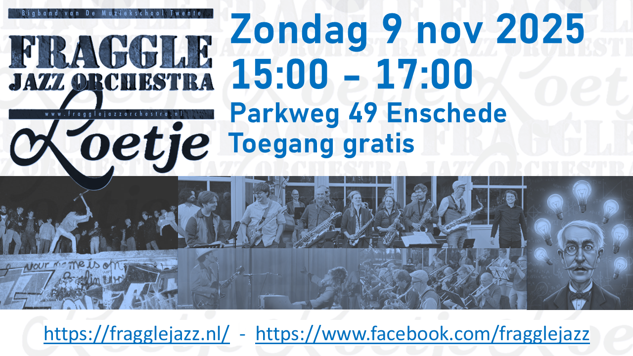 Zondag 9 november 2025, vanaf 15:00, bij Loetje in Enschede (Parkweg 49). Gratis toegang, inclusief parkeergelegenheid.